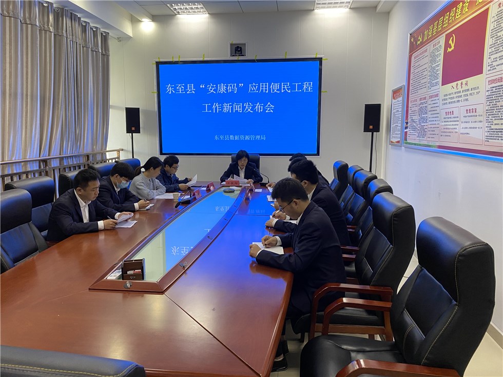 主持人:各位领导,新闻界的朋友们,大家好!欢迎大家出席今天县数据资源管理局举办的新闻发布会。参加今天新闻发布会的有县政府网、县融媒体中心、县政府新闻办等单位。本次新闻发布会的发布主题是:东至县关于“安康码”应用便民工程工作情况。下面请县政协副主席、县数据资源管理局局长汪敬阳同志向大家介绍我县工作有关情况,并回答大家的提问。