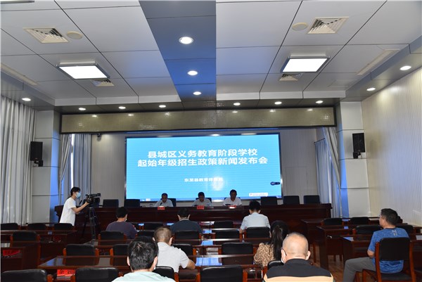 出席今天发布会的媒体代表有东至县政府网、县融媒体中心、县政府新闻办,出席今天发布会的领导有:县委教育体育工委委员、县教研室主任赵学武;县教育股股长洪中良。今天的发布会有两个环节:一是请县委教育体育工委委员、县教研室主任赵学武介绍我县2021年县城区义务教育阶段学校起始年级招生工作情况。二是请大家就关心的问题提问,由洪中良股长和大家进行沟通交流。