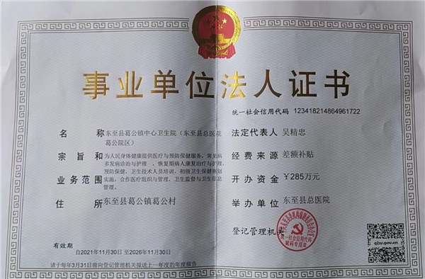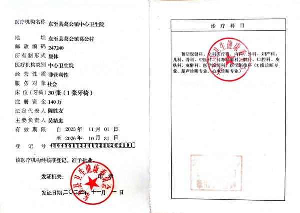 | 名称: | 东至县葛公镇中心卫生院 | 文号: | 无 |
