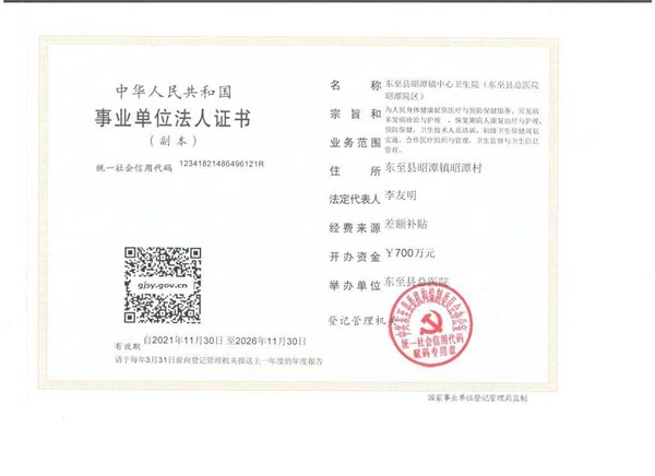 | 名称: | 东至县昭潭镇中心卫生院 | 文号: | 无 |