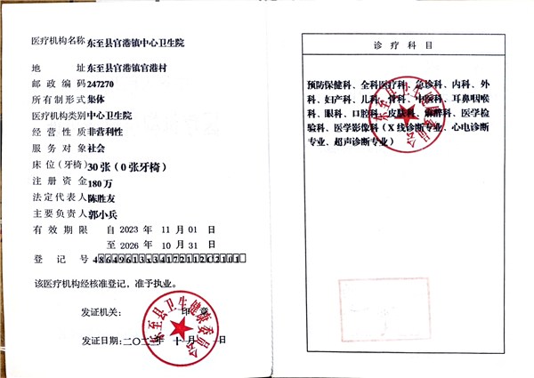 | 名称: | 东至县官港镇中心卫生院 | 文号: | 无 |