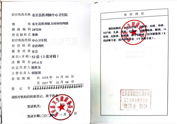 | 名称: | 东至县胜利镇中心卫生院 | 文号: | 无 |