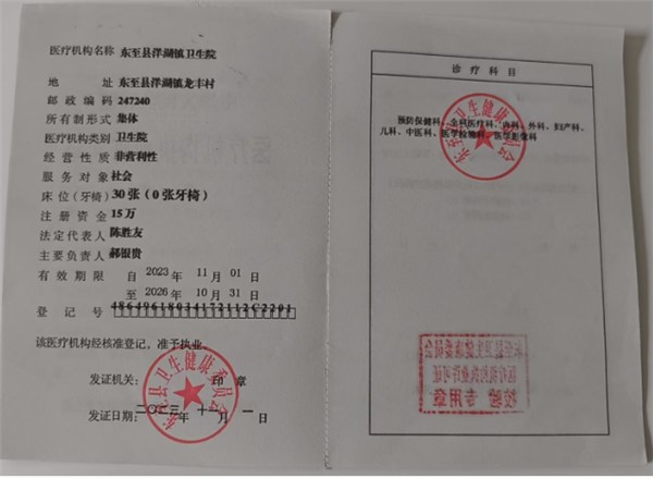 | 名称: | 东至县洋湖镇卫生院 | 文号: | 无 |