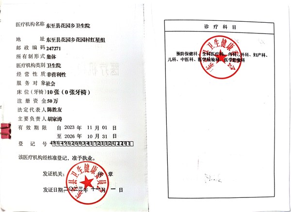 | 名称: | 东至县花园乡卫生院 | 文号: | 无 |
