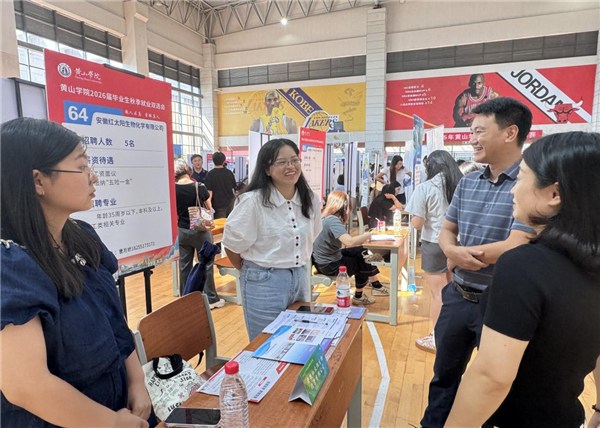 金秋时节的黄山学院校园洋溢着蓬勃朝气,走进招聘会现场,东至县各企业展位前围满了手持简历的学生。学生们积极咨询岗位要求、薪资待遇及发展前景,企业代表耐心解答、热情推介,双方互动频繁。