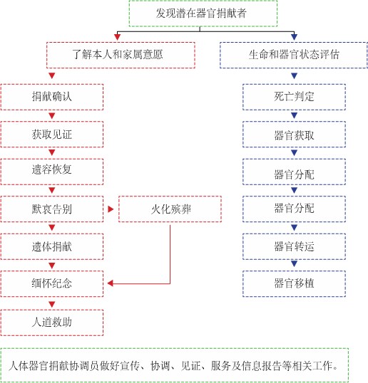 当生命离去时,经医学评估合格,家属一致同意,在协调员的见证下,按捐献意愿获取器官。捐献的器官公平公正分配给器官衰竭患者,移植到患者体内,另一个生命重生。