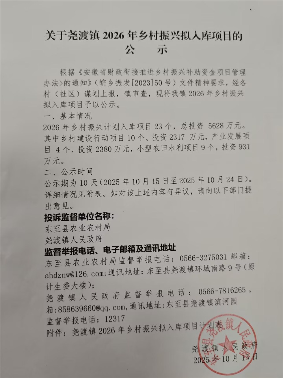关于尧渡镇2026年乡村振兴拟入库项目的公示
