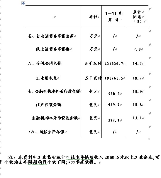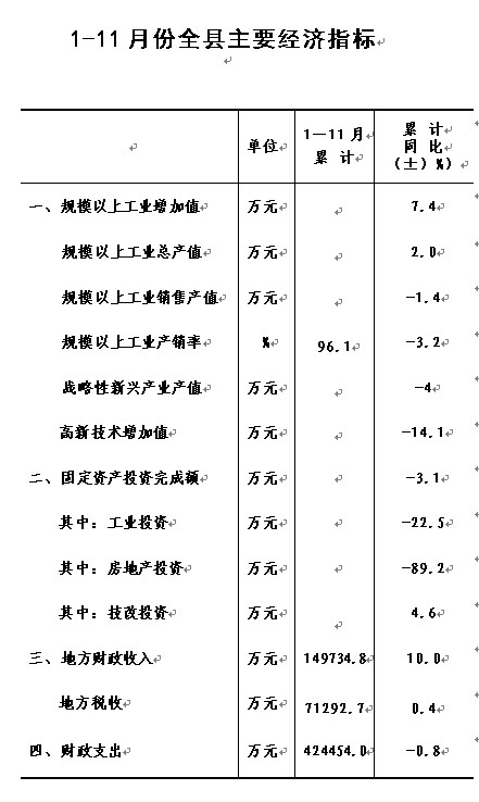 1-11月份全县主要经济指标