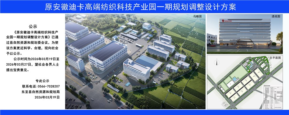 【批前公示】原安徽迪卡高端纺织科技产业园一期规划调整设计方案公示