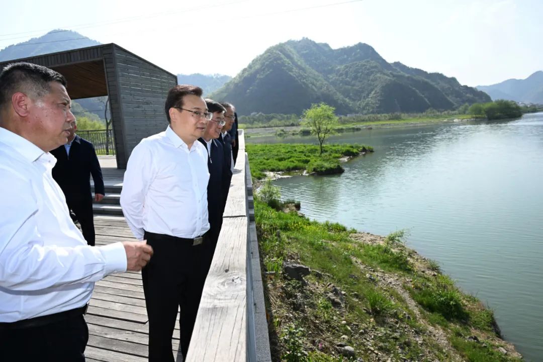4月9日,省委书记梁言顺在秋浦河鸿陵河段防洪综合治理项目现场,了解池州市全域水患治理进展。