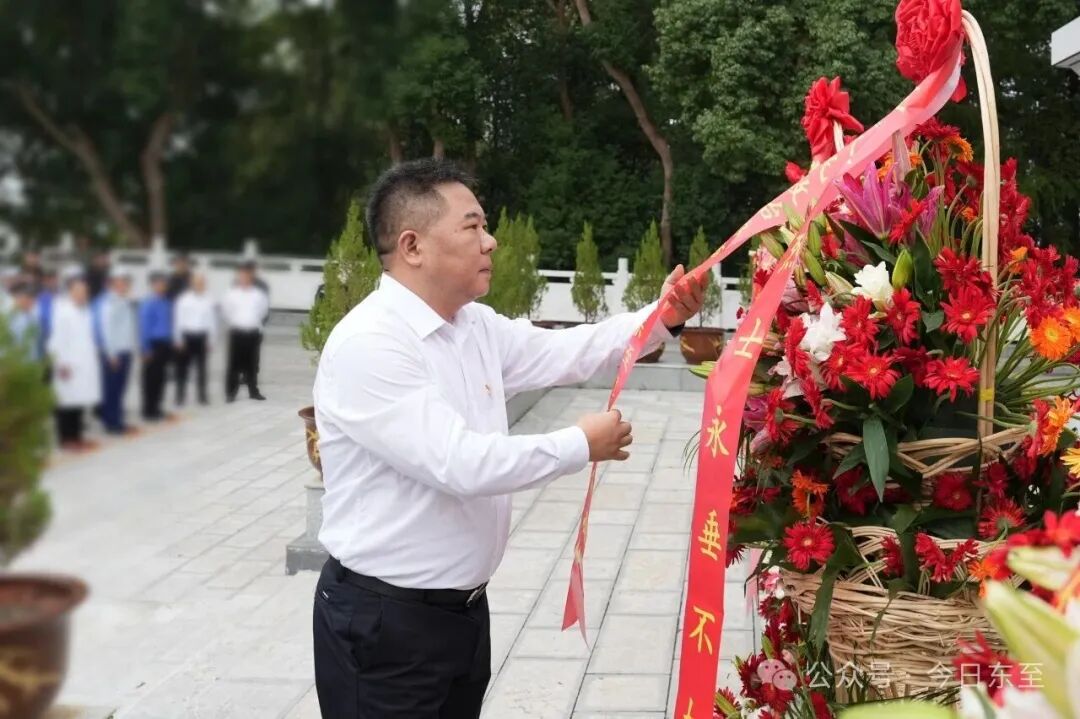 参加敬献花篮仪式的各界代表表示,要更加紧密地团结在以习近平同志为核心的党中央周围,不忘初心、牢记使命,弘扬英烈精神,赓续红色血脉,积极投身改革发展,努力做好本职工作,以实际行动为建设现代化“山水升金·和美东至”贡献力量。