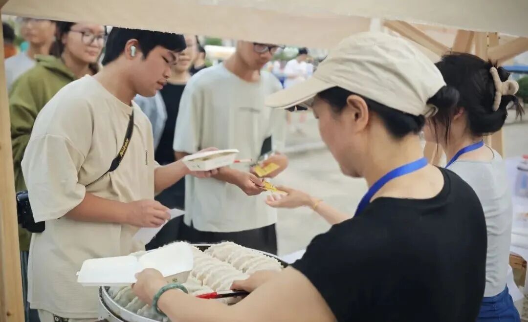 观星的浪漫之外,操场另一侧的特色市集同样热闹。东至麻饼、米饺、黑糍粑等特色美食香气四溢,“东至云尖”茶叶、东至黑木耳等土特产琳琅满目,吸引众多学子驻足品尝、选购。这场“星空下的市集”既让参与者尝到了“东至味道”,更直观展现了当地优质资源,实现“天上观星,地上兴农”的完美融合。