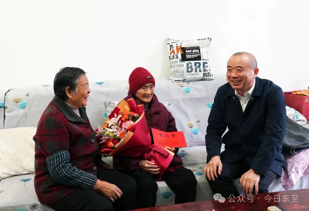 唐礼虎先后来到胜利镇百岁老人程桃伢、余赏月家中。每到一处,唐礼虎与老人及其家属亲切交流,细致询问老人们的身体状况、生活起居情况,倾听他们的心声与需求。看到两位老人精神矍铄、家庭温馨和睦,唐礼虎十分欣慰,叮嘱她们保重身体、乐享晚年,并嘱咐家人继续悉心照顾好老人生活。