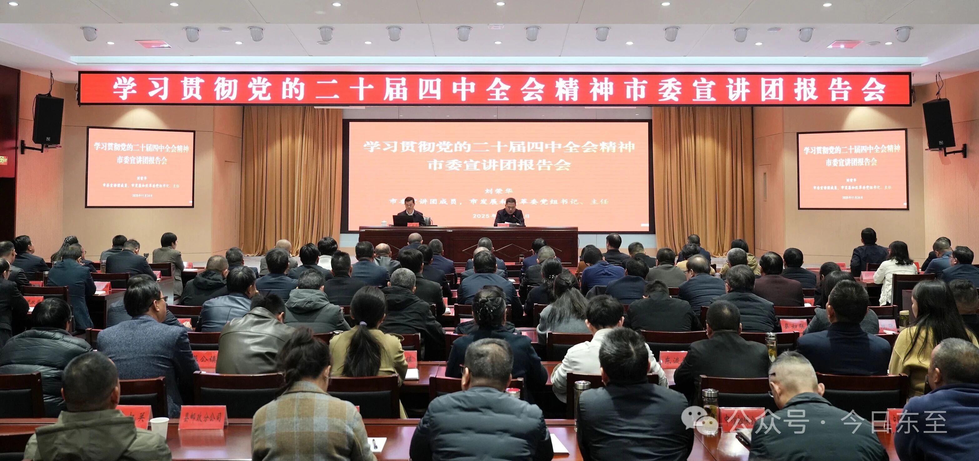 根据市委统一部署,11月24日下午,学习贯彻党的二十届四中全会精神市委宣讲团报告会在东至举行。市委宣讲团成员、市发改委党组书记、主任刘荣华作宣讲报告。县委书记洪克峰主持报告会。县委副书记、县长唐礼虎,县人大常委会主任叶云生,县委常委及其他在职县级领导干部出席会议。