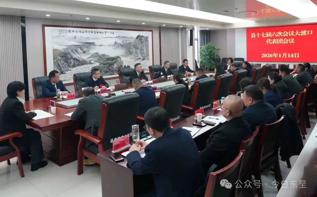 1月14日下午,县委书记洪克峰来到县十七届人大六次会议大渡口代表团,与代表们一起审议《政府工作报告》,审查《“十五五”规划纲要(草案)》和《计划报告》《预算报告》,县领导余跃海、张柏春参加审议。