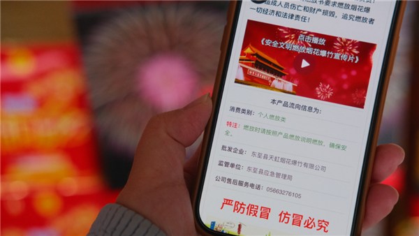 除此之外,科技赋能也为安全加上了“双保险”。为持续强化监管,东至县应急管理局对进入本地市场的烟花爆竹产品统一加贴防伪标签,构建起“码”上溯源、闭环管理的体系。