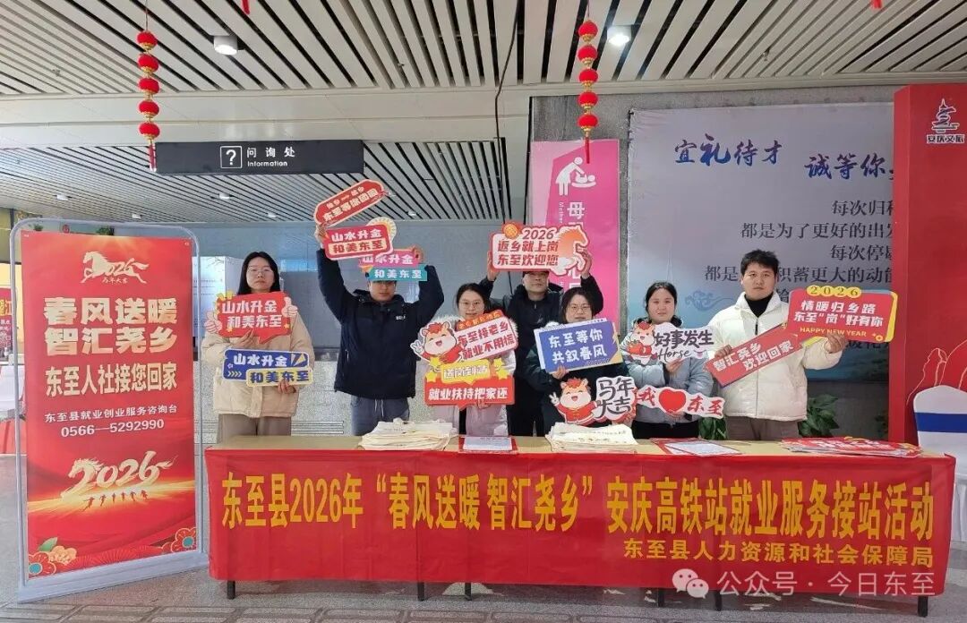 这是2026年春节前,东至县“春风送岗”系列就业服务活动中的一个温暖瞬间。从高铁站的接站服务,到零工市场的专场对接,再到开进村口的“就业大篷车”,东至县用一系列扎实而新颖的举措,在寒冬里为返乡人员送上了就业春风,更送上了留在家乡、建设家乡的信心与机会。