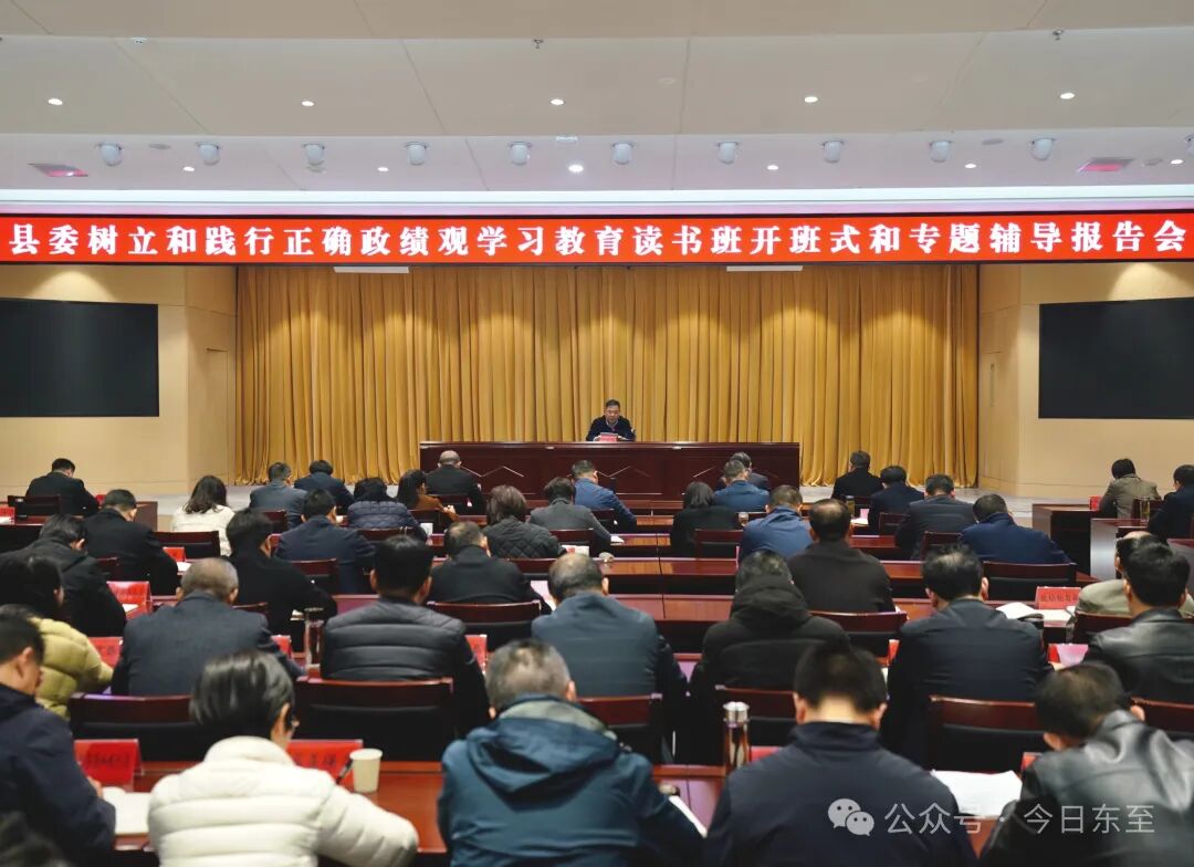 3月22日上午,县委举行树立和践行正确政绩观学习教育读书班开班式和专题辅导报告会。县委书记洪克峰主持并讲话,强调要深入学习习近平总书记关于树立和践行正确政绩观的重要论述,进一步强化立党为公、为民造福理念,聚焦创新引领“四化”同步推动高质量发展,示范带动全县各级党组织和党员、干部坚持实事求是、求真务实,为人民出政绩、以实干出政绩,为加快建设现代化“山水升金·和美东至”提供有力保障。县委副书记、县长唐礼虎,县人大常委会主任叶云生,县委副书记程良才,县委常委,其他在职县级领导干部出席。