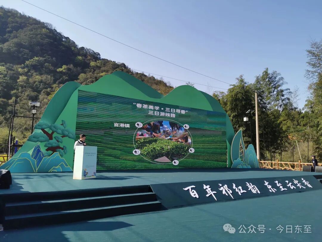 仪式上,东至县“春茶美学·三日寻香”精品旅游线路正式发布,茶叶产业发展联盟倡议同步发起。现场大屏一一呈现花园、木塔、葛公、龙泉四个乡镇茶园开采景象,一幅全景式春茶画卷徐徐展开。