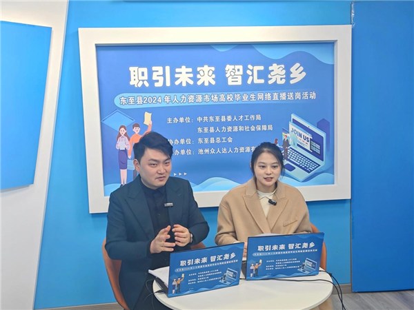 12月24日上午,由中共东至县委人才工作局、东至县人力资源和社会保障局主办、东至县总工会协办的“职引未来 智汇尧乡——2024年东至县网络直播送岗活动”火热开播。此次直播带岗活动以“职引未来,智汇尧乡”为主题,旨在助力企业和高校毕业生等各类求职者双向在线奔赴。