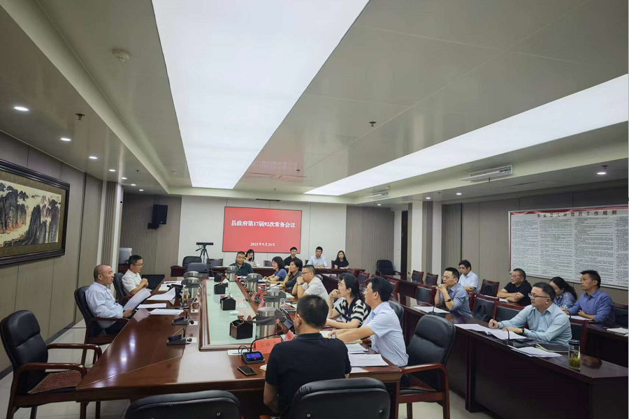 会议时间:2025年9月24下午;会议地点:县政务中心605会议室;与会人员:县政府领导班子成员,议题相关单位;主持人:县委副书记、县长唐礼虎。