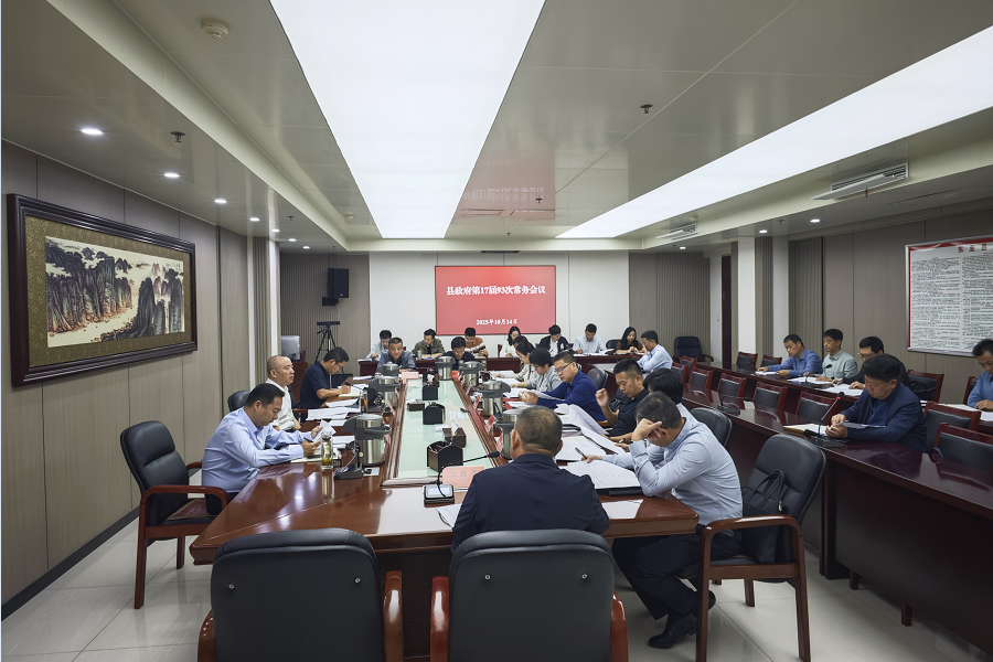 会议时间:2025年10月14上午;会议地点:县政务中心605会议室;与会人员:县政府领导班子成员,议题相关单位;主持人:县委副书记、县长唐礼虎。