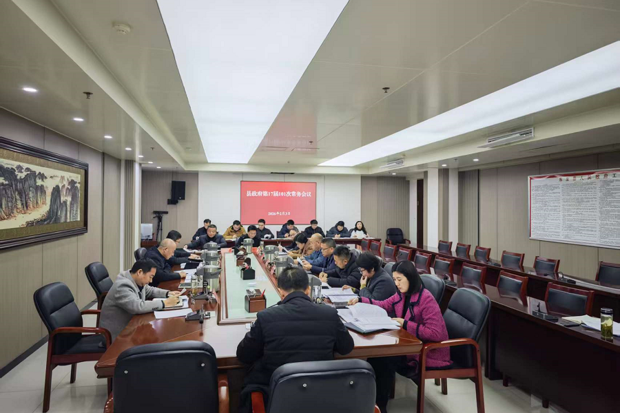 2月3日下午,县长唐礼虎主持召开县政府第17届101次常务会议,传达学习习近平总书记在中共中央政治局第二十四次集体学习时的重要讲话精神、省委农村工作会议精神,研究贯彻落实意见,审议《东至县2026年县本级政府投资项目计划(送审稿)》等。