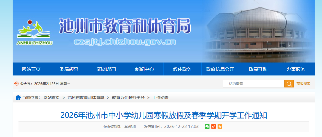 根据池州市教育和体育局官网