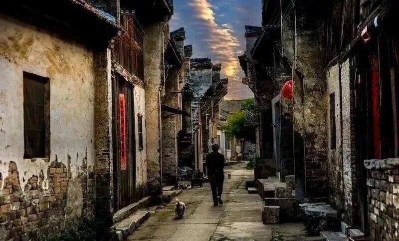 老街入口不太明显,没有过于华丽的牌匾或者指路牌,一条斜插主道路的巷子,从那里走进去就是东流老街。两旁的房屋明显有岁月留下来的痕迹,青砖褪去了原有的颜色,略显斑驳。墙面也不再光洁,或有青苔,或有爬山虎,或有脱落的坑坑洼洼……纵然不再完整,却有一份岁月沉淀的韵味。